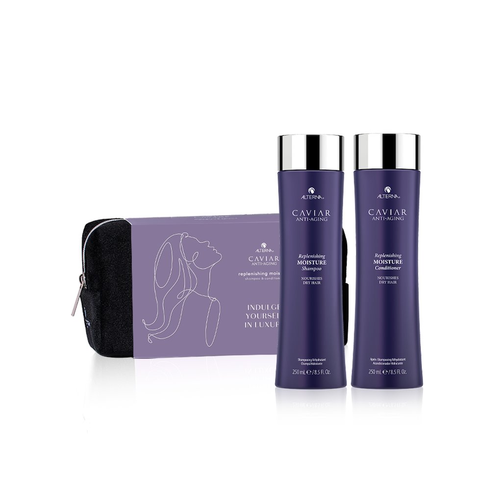 Rovné, vlnité, kudrnaté – všechny vlasy mají jedno společné přání, a to je hydratace. Splňte jim jej díky dárkovému balení produktů Alterna Caviar Replenishing Moisture. 100% recyklovatelná krabička z kraftového papíru ukrývá šampon a kondicionér, které zanechají vlasy čisté, hydratované, revitalizované a připravené na jakékoliv další úpravy a styling.