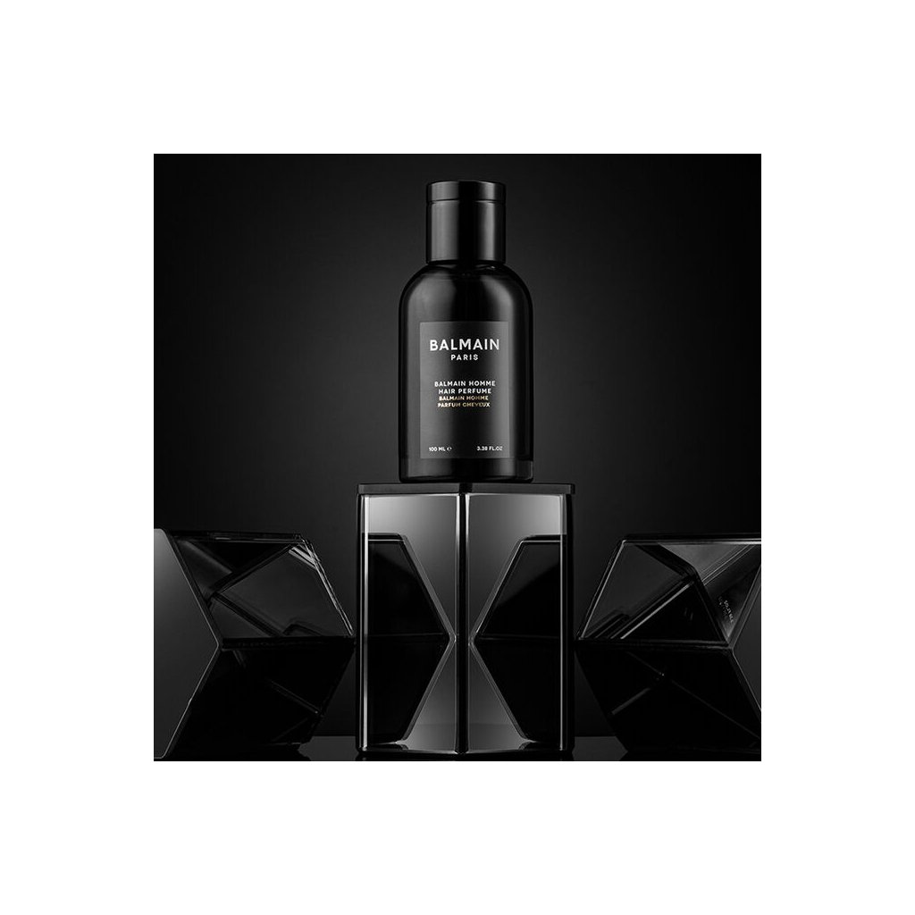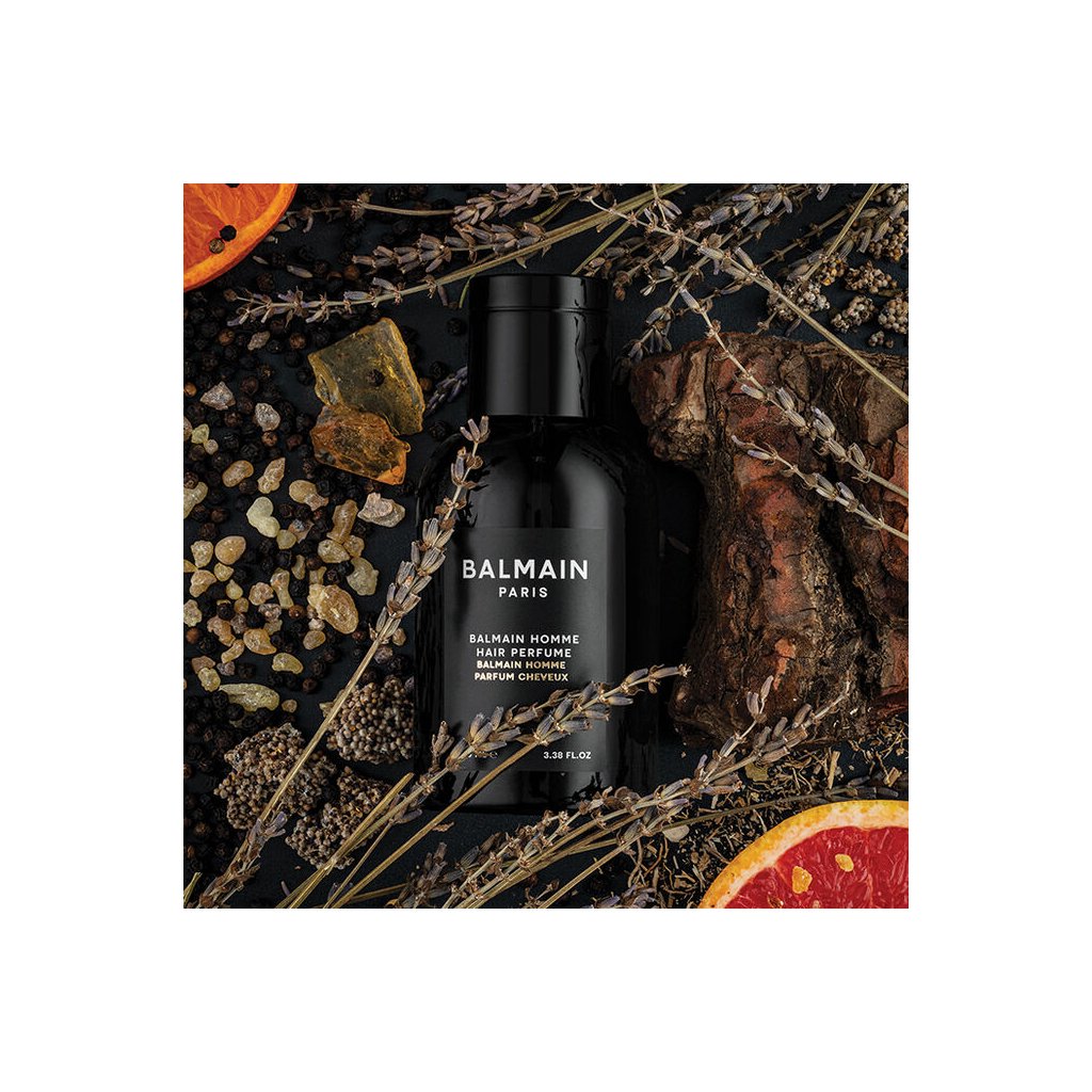 Pánský vlasový parfém se vyznačuje bohatou, intenzivní orientální a dřevitou vůní řady Balmain Homme, která v sobě spojuje povzbudivé a svěží citrusové tóny bergamotu s dřevitými prvky vůně santalového dřeva.